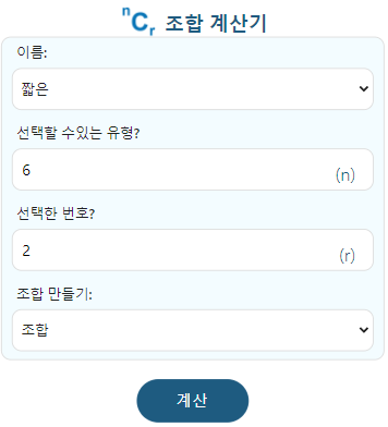 계산하기 버튼을 누르면 경우의 수가 계산됩니다