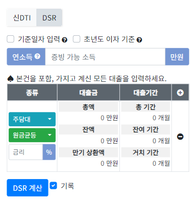 DSR 계산기의 사용 방법은 다음과 같습니다